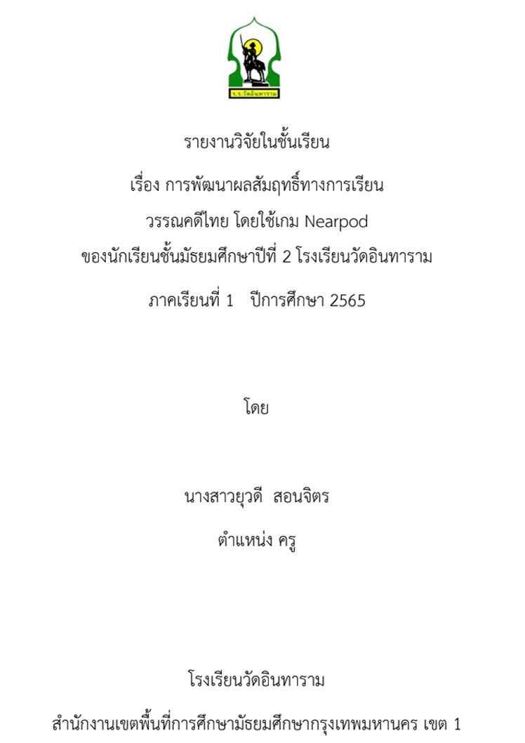 วิจัยในชั้นเรียนทั้งหมด คลิกที่นี่...