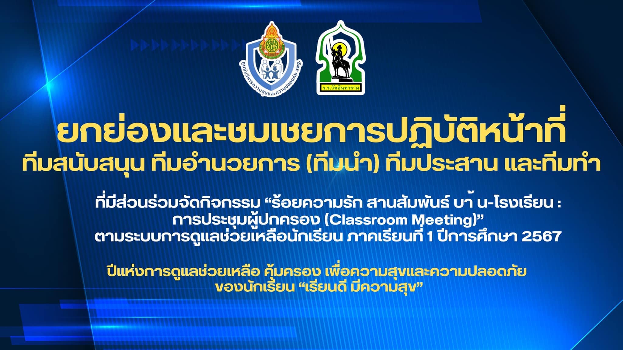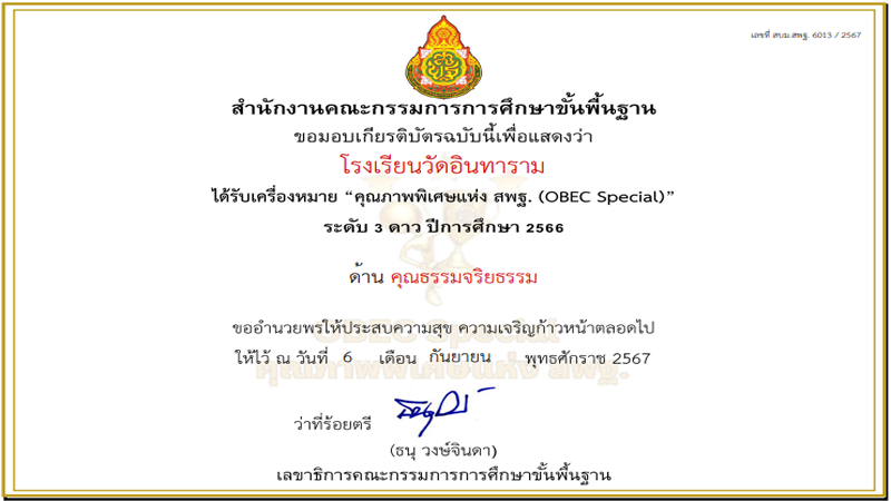 โรงเรียนวัดอินทาราม การดำเนินงานโรงเรียนคุณธรรม |