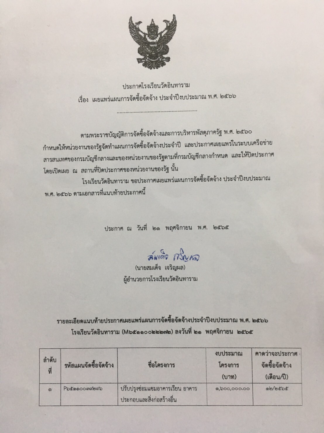 | ประกาศโรงเรียนวัดอินทาราม | ||