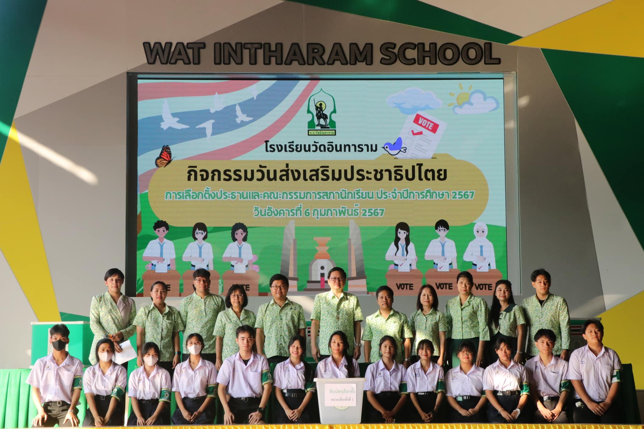 การเลือกตั้งประธานและคณะกรรมการสภานักเรียน โรงเรียนวัดอินทาราม ประจำปีการศึกษา 2567 เวลา 08.30 น. ณ สนามโรงเรียนวัดอินทาราม